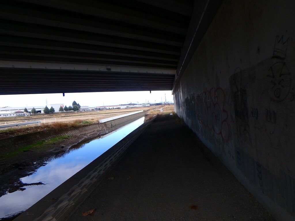 新4号西側の小道は、信号渡った先で新4の下をくぐり東へ。11:53。