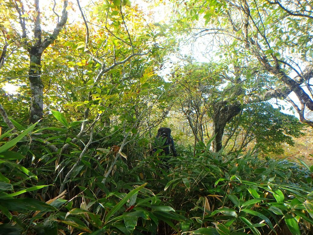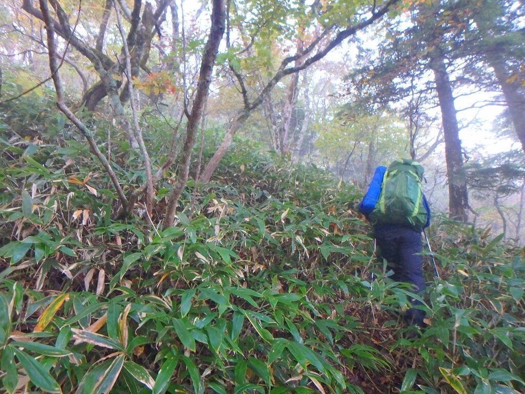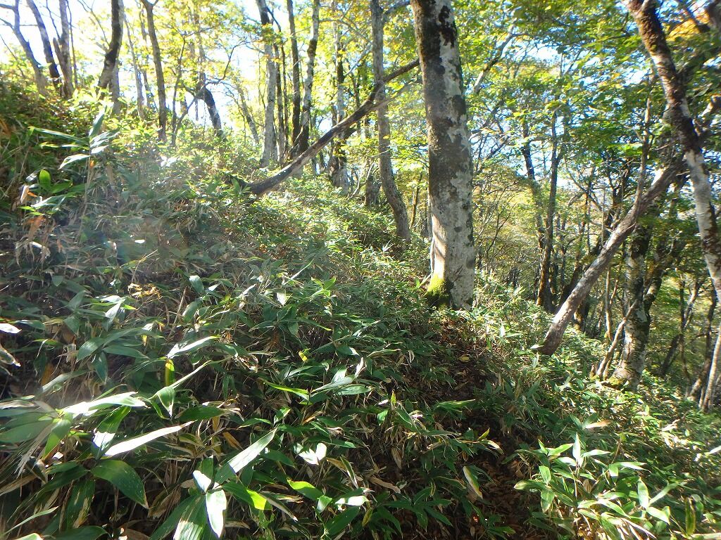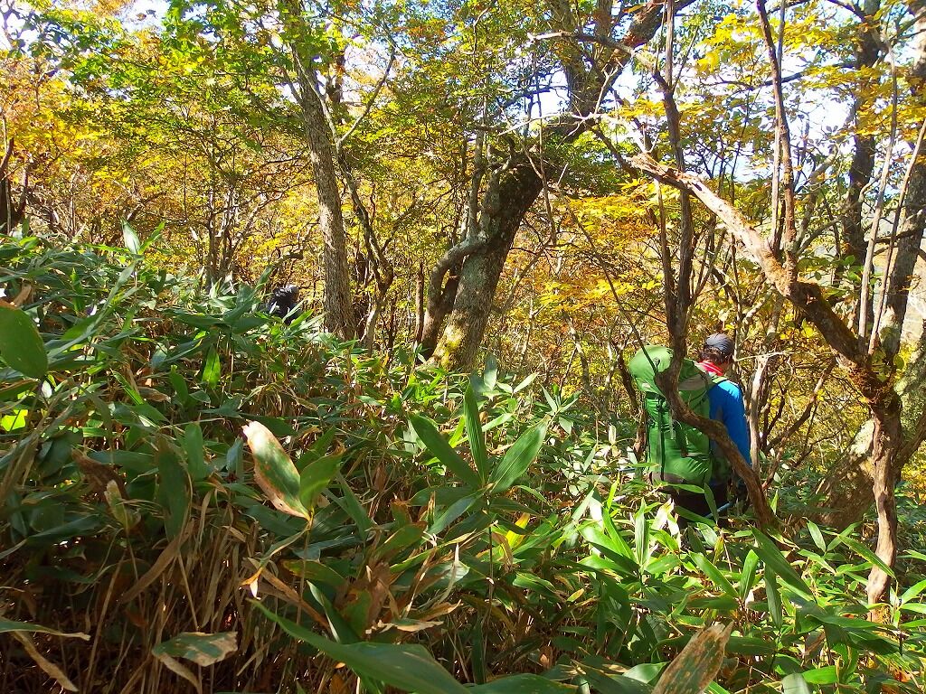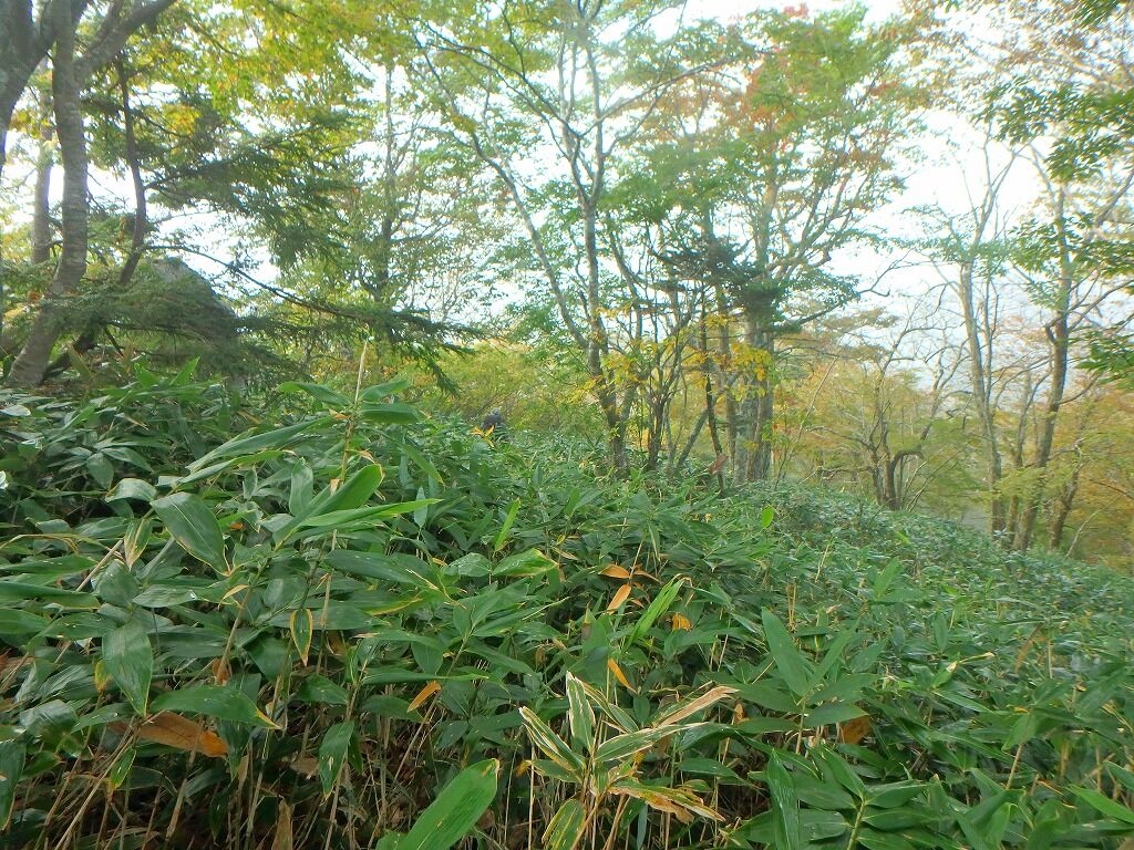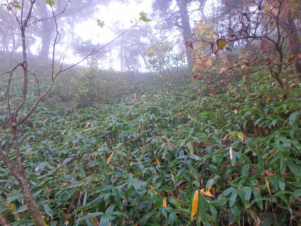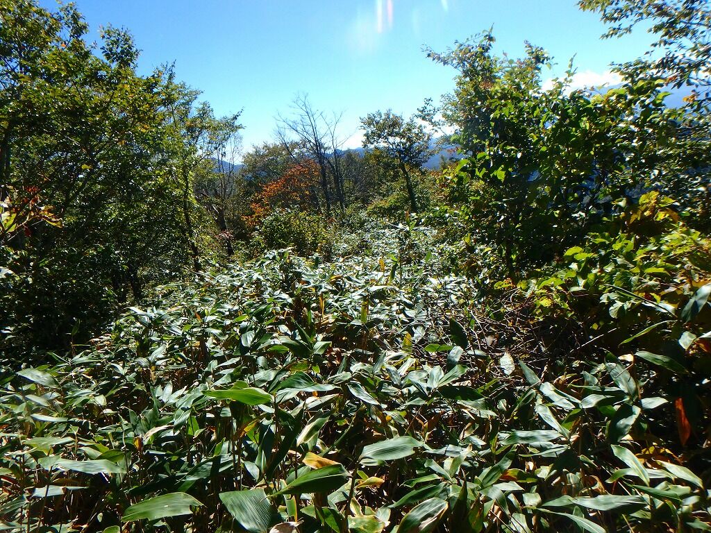 展望の良さを慰めに笹薮を歩いていく。