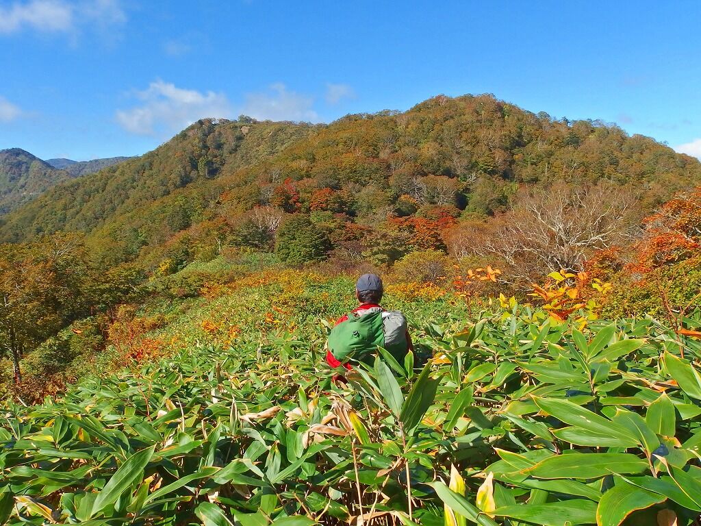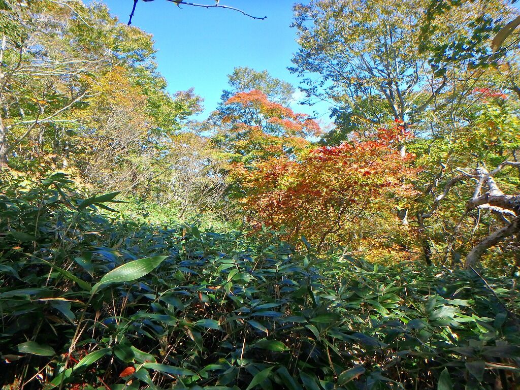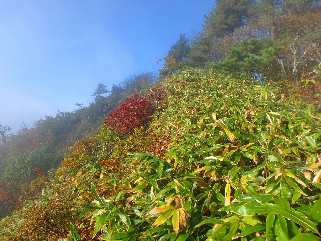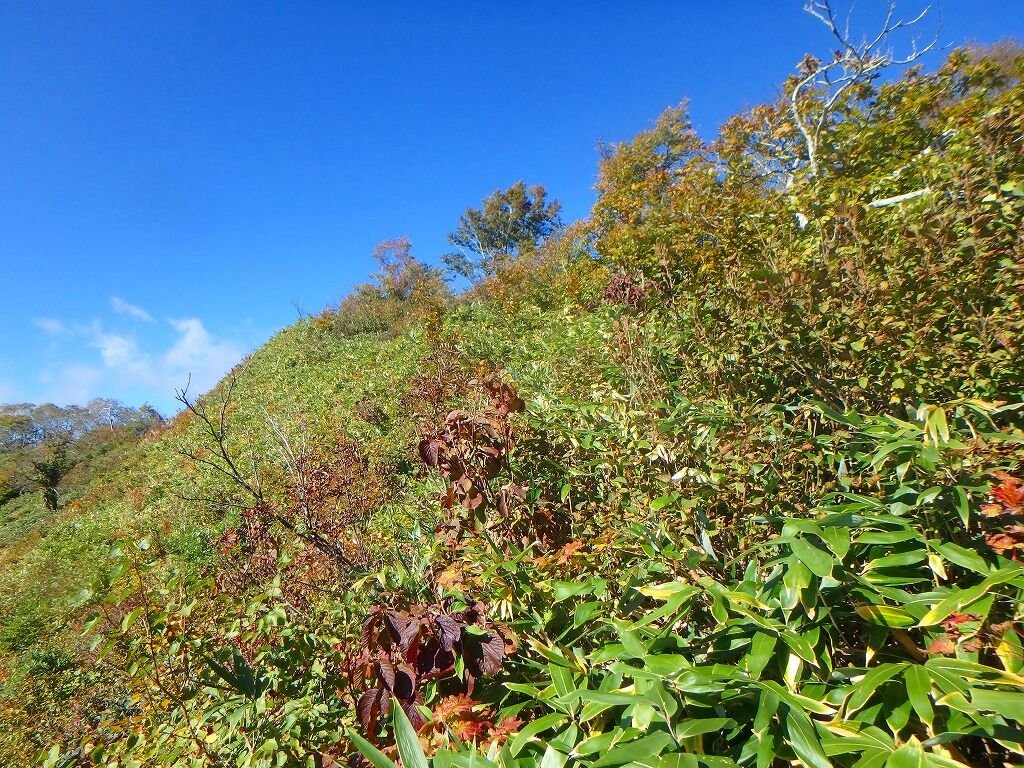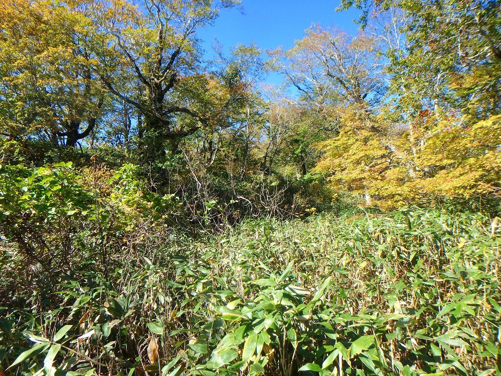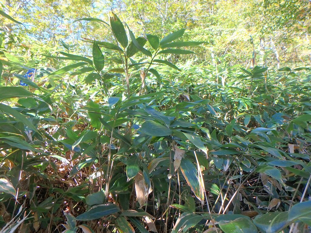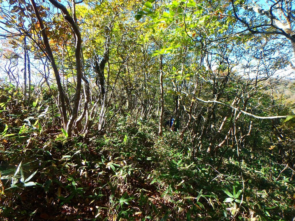 展望の良さを慰めに笹薮を歩いていく。