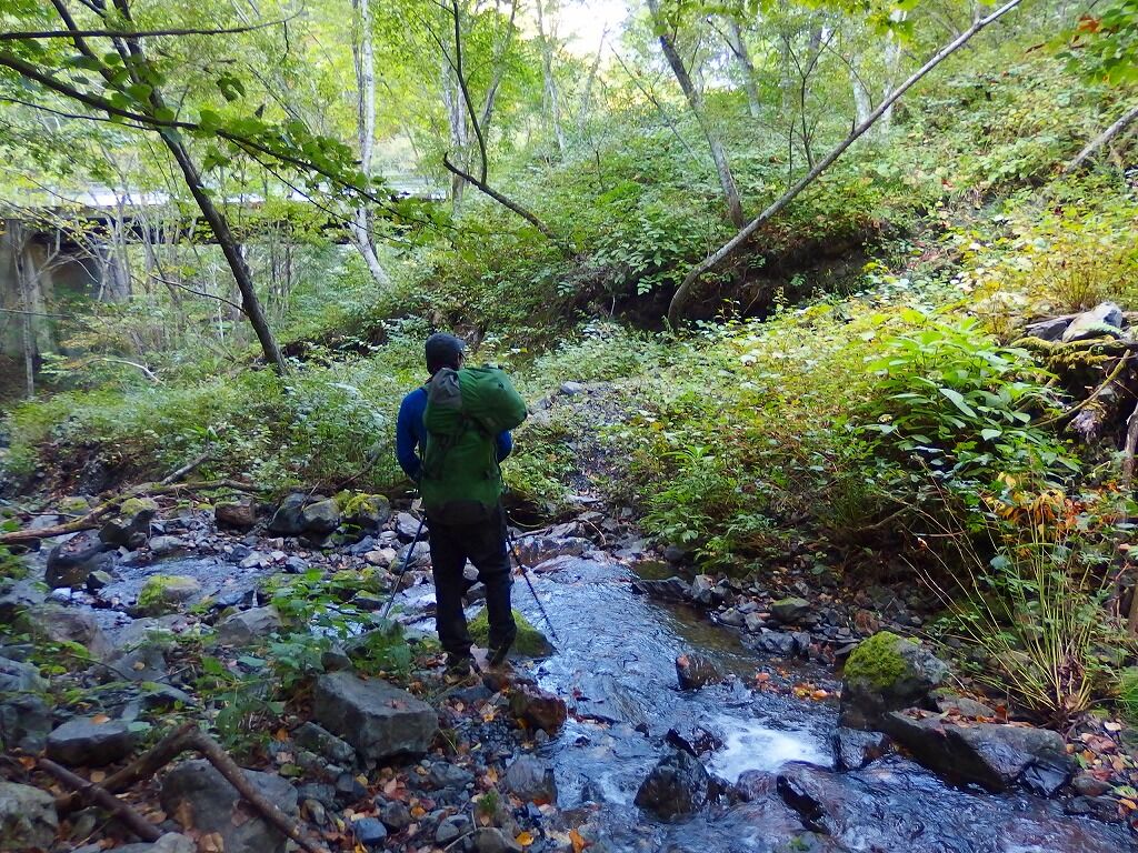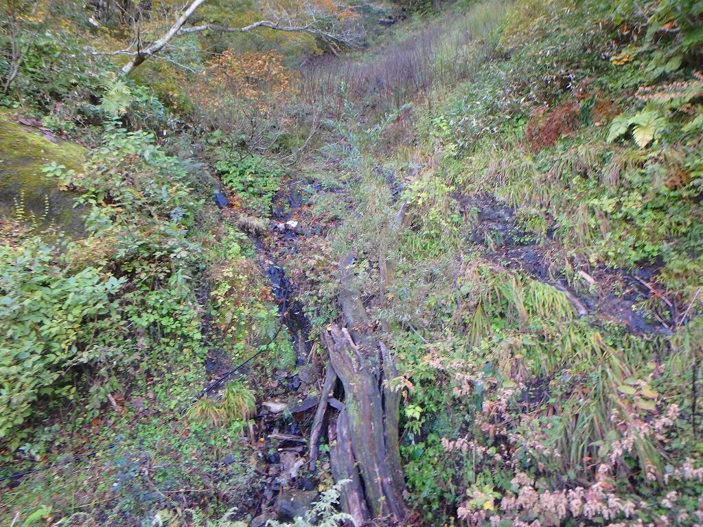 下らずに少し先を探るが沢に降りられなくなりそうだ。適当に下り沢に出る。