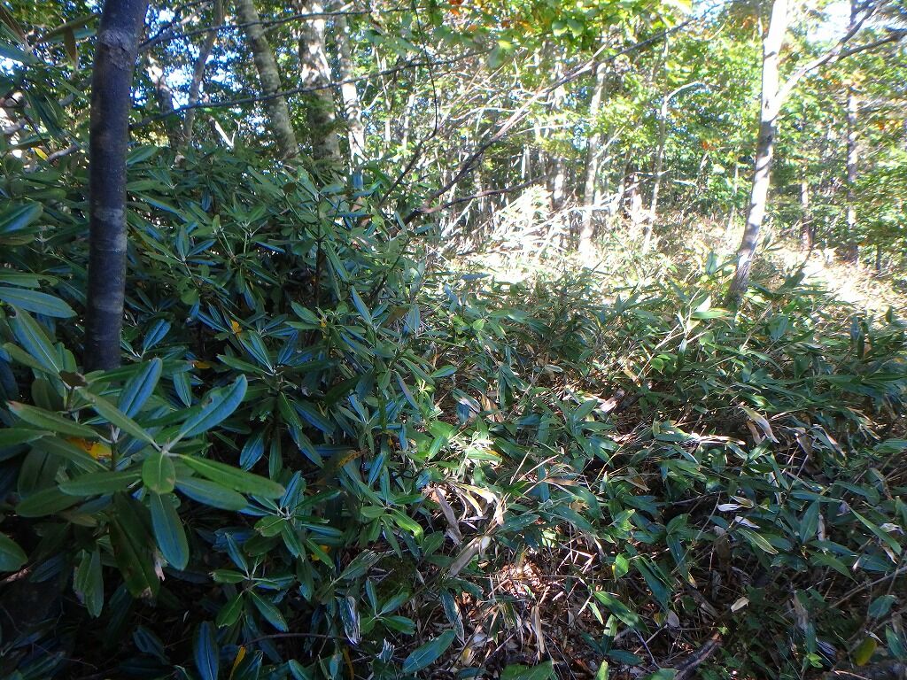 右側が植林なせいか尾根上に藪はなくすっきりとしているが、そうでなければナゲ達が占拠していたのかもしれない。