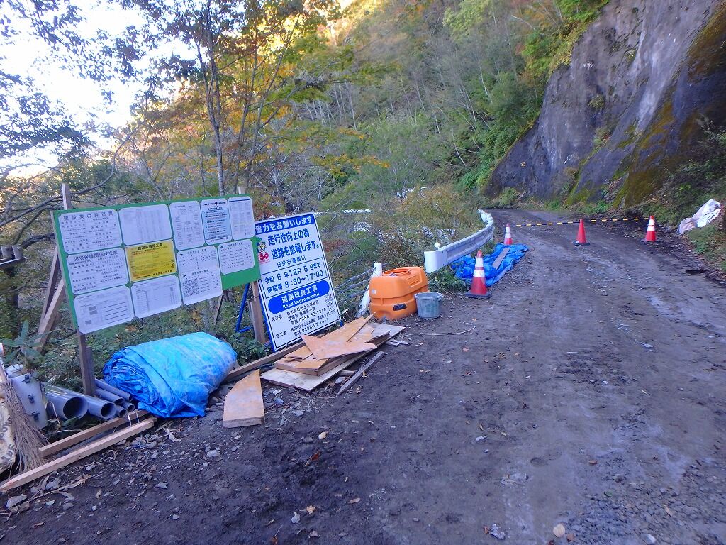 するとすぐ先で絶賛工事中で林道が掘り下げられていた。こそこそと突破。