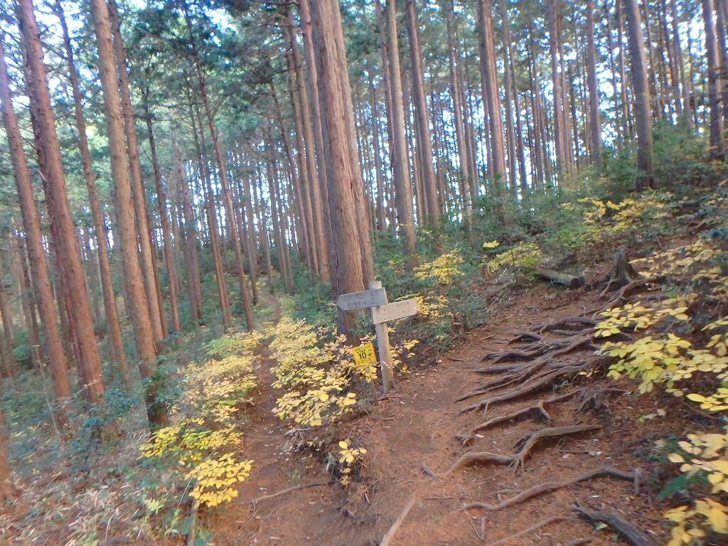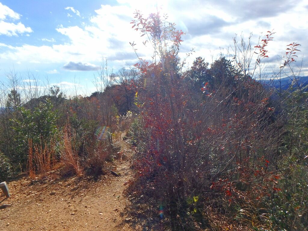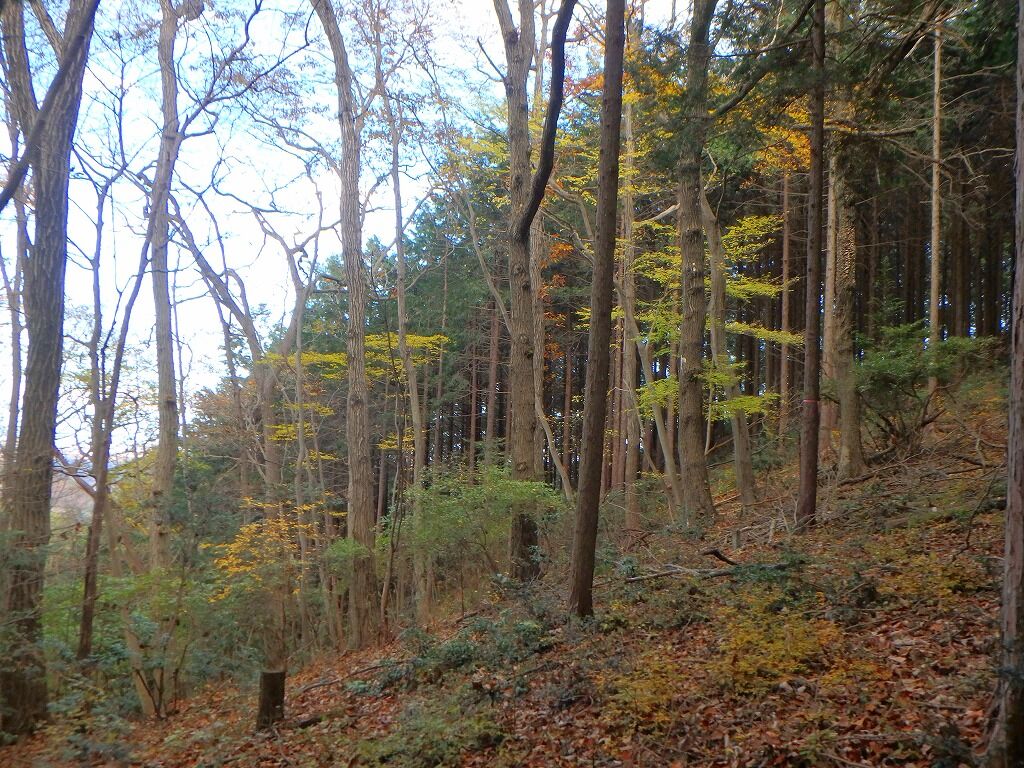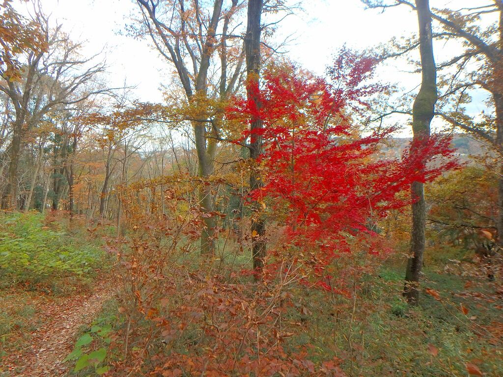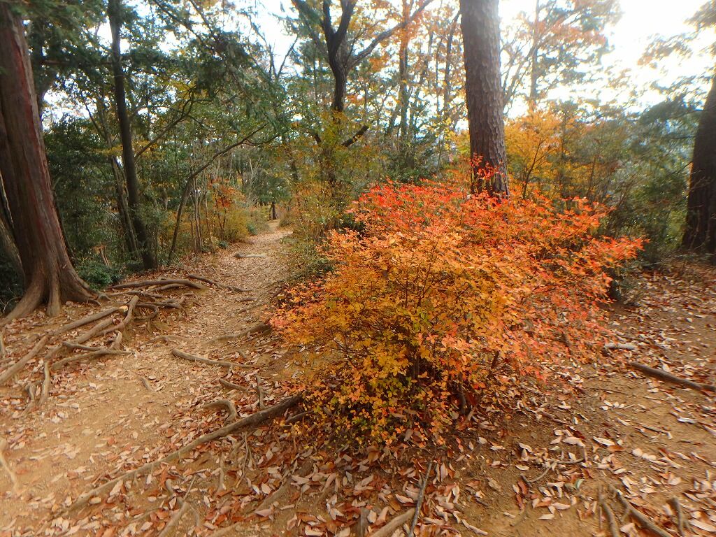登山道をぶらぶら歩き、日和田山が近づくと色づきもあるが楓ではなくツツジとかのようだ。