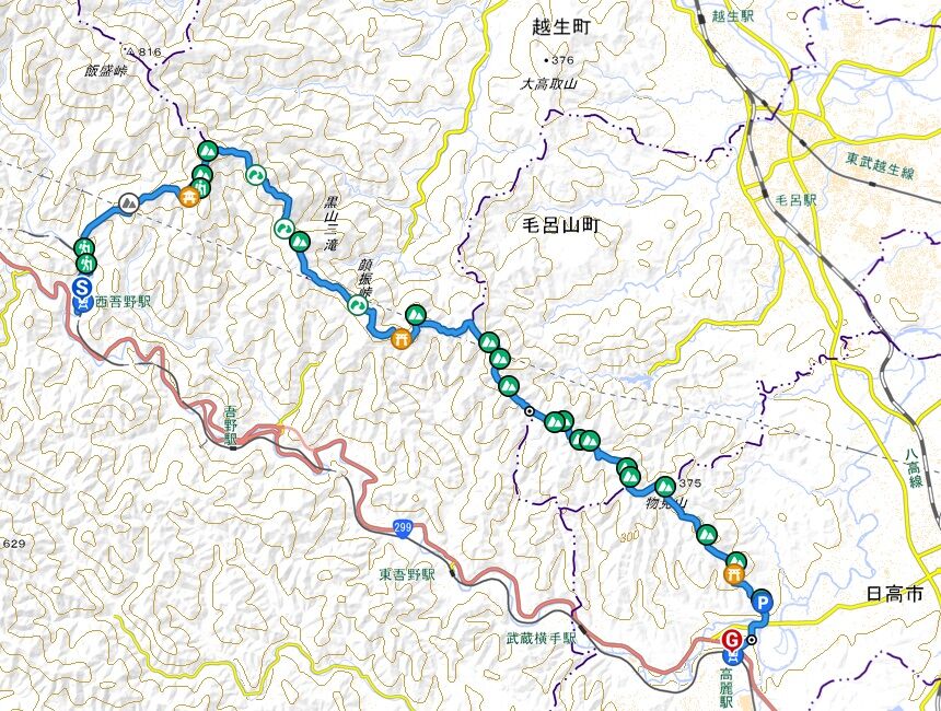 高麗川対岸の伊豆ヶ岳から南東もいずれ歩こうかなあと思うが優先度は低い。どうせ植林ゾーンだし。ハンターからの逃げ場として歩くのはありか。